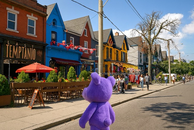 Puis Doudours va visiter la vieille ville de Toronto. Ici, pas de grands immeubles mais beaucoup de vieilles maisons pleines de couleurs, avec des commerces et de beaux graffitis.